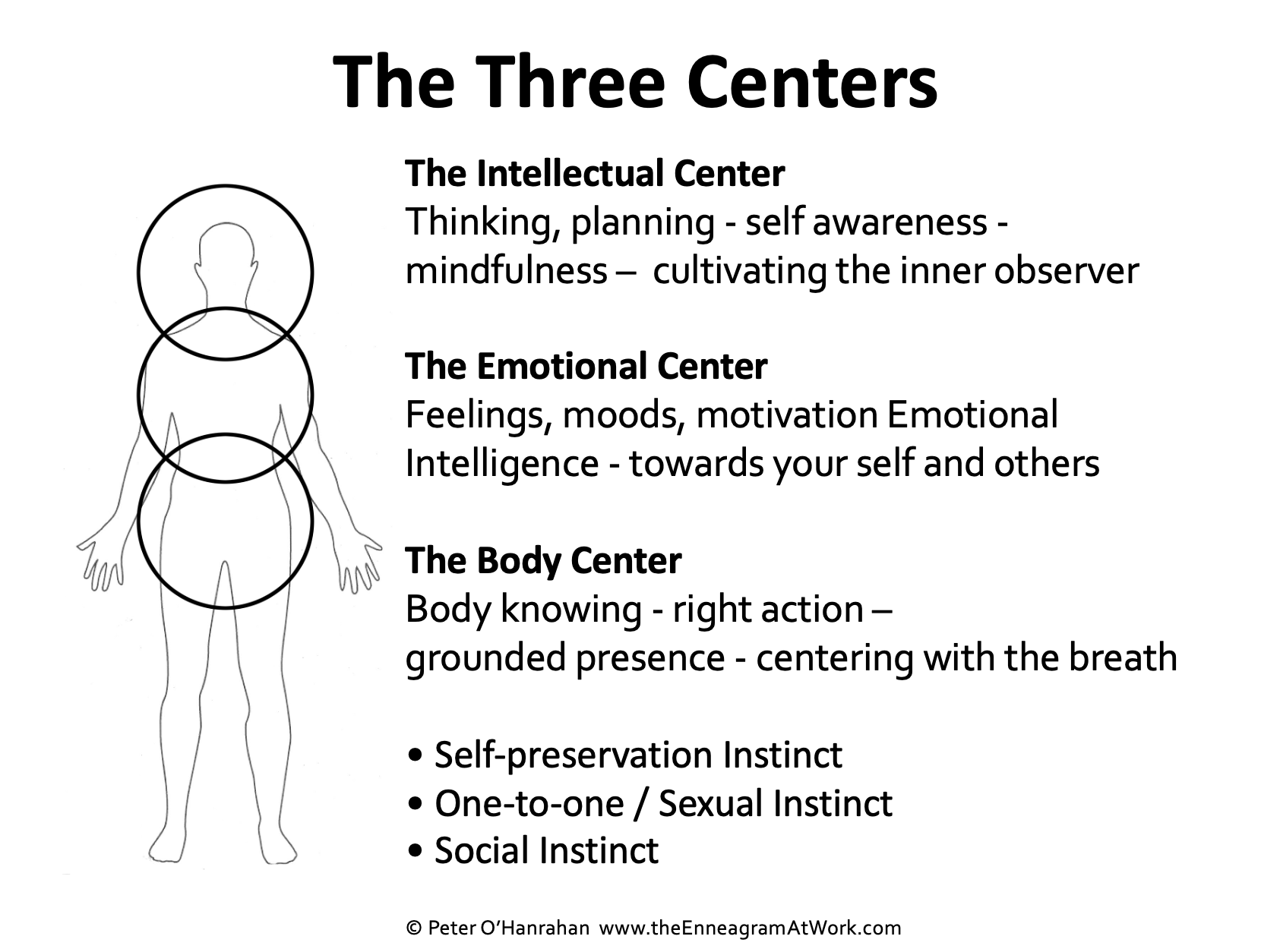 - Inner work and practices for each of the three centers